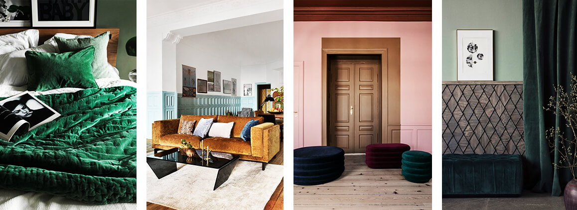 Du velours aux couleurs chatoyantes et le tour est joué : votre maison prend un aspect élégant, presque majestueux. Ce n'est pas pour rien qu'elle était autrefois considérée comme l'étoffe des rois. Longtemps boudé, il fait son grand retour et on le retrouve forcément dans les tendances de la maison. Le velours est difficile à tisser, il est doux au toucher mais pas lisse. L’avantage du velours est qu’il s’accorde avec tous les styles. Vous pouvez utiliser le velours sur les accessoires de votre intérieur : sur les oreillers et les couvertures par exemple. Mais aussi sur les rideaux, les poufs ou sur les chaises.