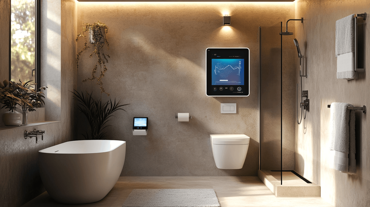 Dans une salle de bain moderne, les technologies innovantes sont indispensables pour augmenter le confort et le luxe. Les technologies Smart-Home offrent de nombreuses fonctions qui facilitent le quotidien.\n\nUn élément central est le contrôle intelligent de la lumière, de la température et de l'eau. Les thermostats intelligents permettent un ajustement individuel de la température de la pièce, tandis que les systèmes d'éclairage intelligents créent l'ambiance adéquate. Ces systèmes peuvent être contrôlés via des applications ou la commande vocale.\n\nLes robinets numériques offrent un réglage précis de la température et de la quantité d'eau, ce qui augmente le confort et économise l'eau. Certains modèles permettent des préréglages individuels.\n\nLes miroirs avec technologie intégrée offrent des fonctions supplémentaires telles que des haut-parleurs, un éclairage LED ou des écrans tactiles, permettant l'accès aux nouvelles ou à la musique.\n\nLes toilettes intelligentes avec sièges chauffants, chasse d'eau automatique ou fonctions bidet offrent un confort et une hygiène supplémentaires.\n\nLes technologies de divertissement comme les téléviseurs étanches ou les systèmes de haut-parleurs permettent d'écouter de la musique ou de regarder des films pendant le bain. Ces technologies créent une ambiance moderne et tournée vers l'avenir.