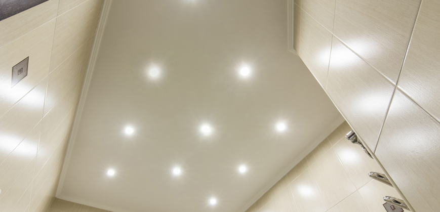 Si vous ne disposez pas ou peu de lumière naturelle, le plafonnier de salle de bain semble être la meilleure alternative pour vous : Le plafonnier éclaire l’ensemble de la salle de bain tandis que les spots ou les appliques vont venir éclairer de manière plus ciblée au-dessus de l’armoire de toilette ou de part et d’autres du lavabo. Optez pour des lumières LED et comptez entre 400 et 650 lumens/m2 maximum pour une salle de bain bien éclairée sans être ébloui tous les matins. Pour vos séances maquillage ou rasage, équipez-vous d’un miroir avec un éclairage LED intégré de couleur chaude ou froide selon l’atmosphère générale que vous souhaitez donner à votre salle d’eau.