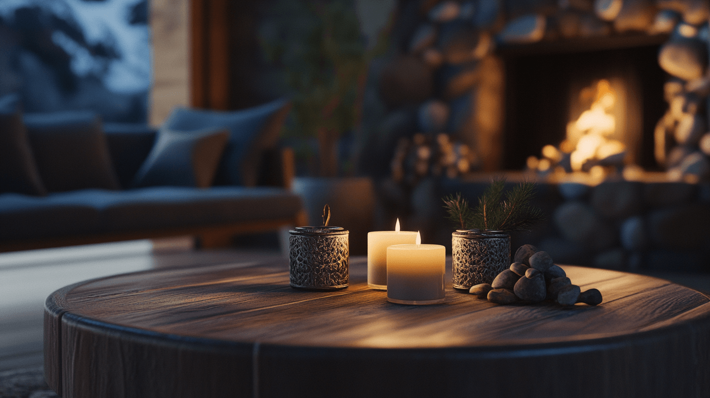 De petits accessoires comme des bougeoirs en métal, des vases en céramique ou des bols en bois peuvent être stratégiquement répartis dans la pièce pour créer des accents. Les plantes, comme les petits sapins ou les succulentes, apportent un morceau de nature à l'intérieur et s'accordent parfaitement avec le style alpin.
