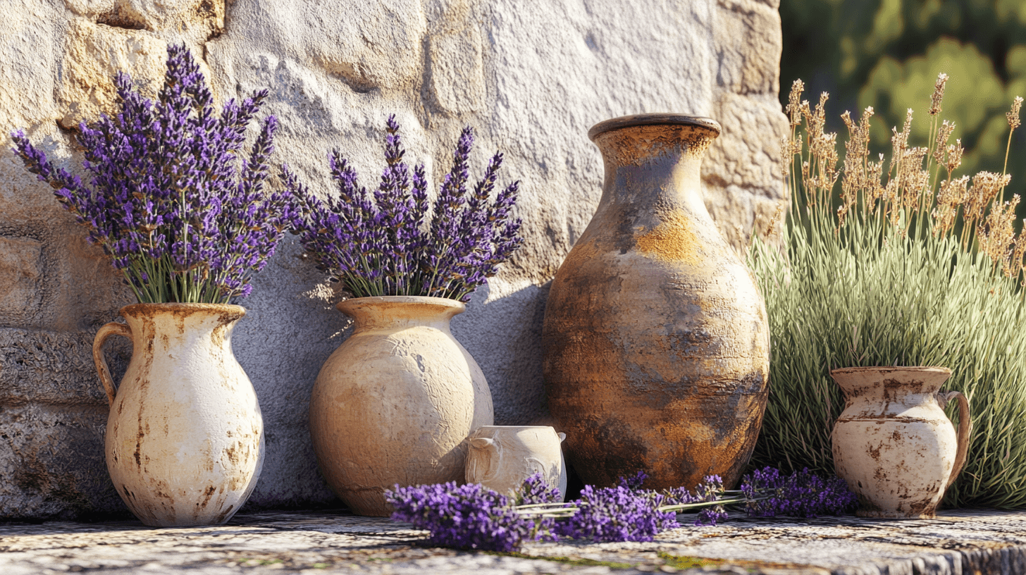 Outre la lavande, d'autres plantes et fleurs comme les roses, les tournesols, les branches d'olivier et les herbes comme le romarin et le thym sont des éléments de décoration populaires. Ces plantes peuvent être arrangées dans des vases, accrochées en couronnes sur les portes et les murs, ou placées dans des pots sur les rebords de fenêtres et les étagères.