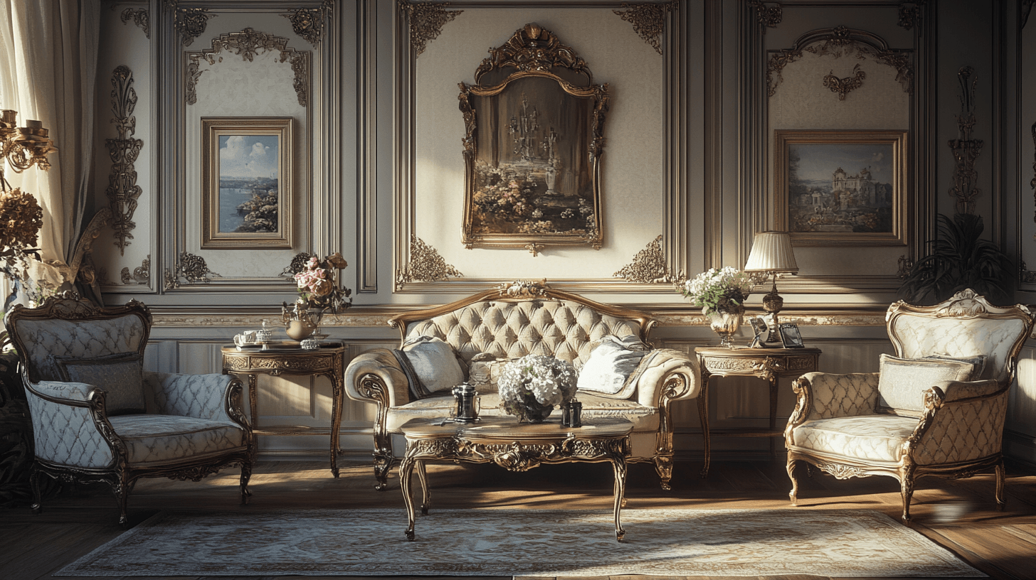 Pour compléter le look Vintage Glam, vous pouvez opter pour des accessoires tels que des miroirs avec des cadres élaborés, des lampes antiques et des tapis artistiques. Ces éléments s'intègrent parfaitement dans l'ensemble et renforcent le caractère glamour de la pièce. Il est important que vous prêtiez attention à une palette de couleurs harmonieuse lors du choix des meubles et des accessoires. L'or, l'argent, le noir et les tons de bijoux profonds comme le vert émeraude ou le rouge rubis sont idéaux pour souligner le style Vintage Glam.